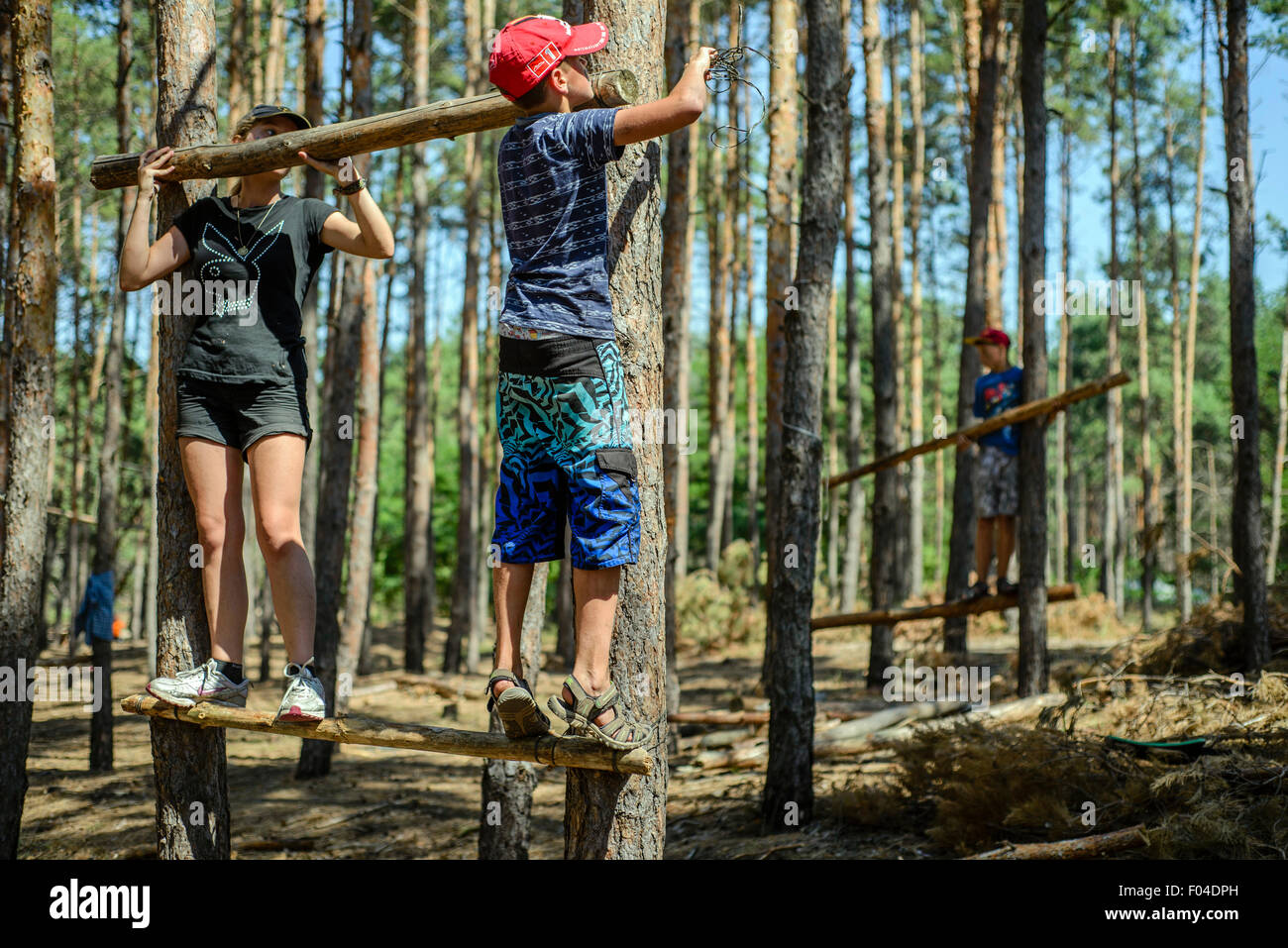 Scouts Building A Treehouse On A Survival Course In Ukrainian